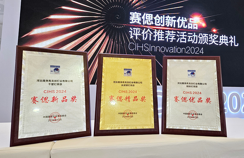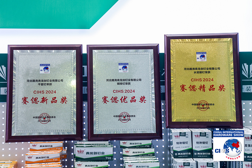 中國(guó)國(guó)際五金展(CIHS)為全球五金行業(yè)提供一站式的采購(gòu)商貿(mào)平臺(tái),吸引了來(lái)自世界各地的行業(yè)領(lǐng)軍企業(yè)和專業(yè)人士參與。此次參展的鋼釘、氣動(dòng)釘、螺絲、鉆尾等多系列產(chǎn)品中,青龍劍水泥鋼釘、鋼排釘、干壁釘三款產(chǎn)品憑借卓越的品質(zhì),在眾多產(chǎn)品中脫穎而出,分別榮獲“CIHS2024賽偲精品獎(jiǎng)”、“CIHS2024賽偲優(yōu)品獎(jiǎng)”以及“CIHS2024賽偲新品獎(jiǎng)”三大獎(jiǎng)項(xiàng),彰顯了公司在釘類產(chǎn)品領(lǐng)域的領(lǐng)先地位。