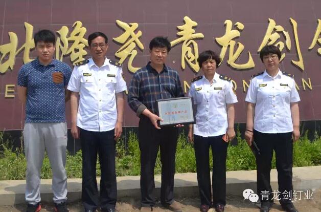 2015年5月8日隆堯縣質(zhì)監(jiān)局局長(zhǎng)張志霞在張彥國(guó)書記、盧艷玲科長(zhǎng)等領(lǐng)導(dǎo)的陪同下蒞臨青龍劍釘業(yè)指導(dǎo)工作并舉行“河北省名牌產(chǎn)品”授牌儀式,張局長(zhǎng)對(duì)青龍劍釘業(yè)取得的成績(jī)給予高度的評(píng)價(jià),同時(shí)提出企業(yè)要不斷加強(qiáng)質(zhì)量工作,大力推進(jìn)管理創(chuàng)新和品牌建設(shè),增強(qiáng)質(zhì)量安全意識(shí)和誠(chéng)信意識(shí),不斷提升企業(yè)產(chǎn)品的市場(chǎng)競(jìng)爭(zhēng)力。