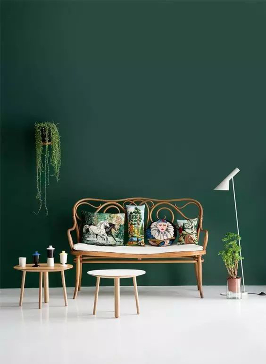 淺色有上升感,深色有下墜感。層高低的房間,可以在頂面用淺色、地面和家具用深色,強行拉開頂、地的視覺距離。或者地面和家具統一用深色,強行把視覺重點往下拉。層高高就更簡單了,在天花板涂上下墜色。其他地方保持淺色調,不然整個房間都會顯得很壓抑。