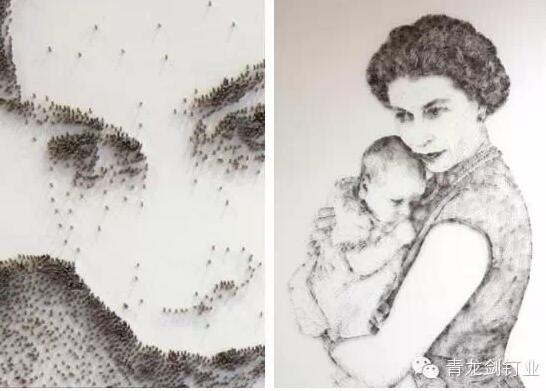 英國沃靈頓市的一名52歲的藝術家用錘子和釘子制作出了一幅幅美麗的名人肖像,其中包括瑪麗蓮·夢露、“披頭士”,甚至是英國女王。