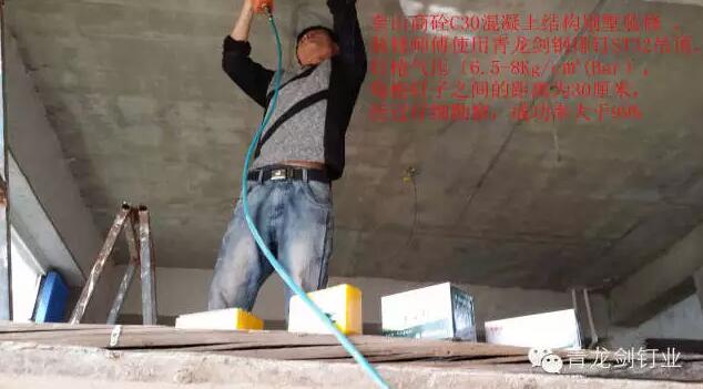 近期青龍劍釘業(yè)技術(shù)人員和銷售人員對青龍劍產(chǎn)品終端用戶進行了走訪調(diào)研。 調(diào)研結(jié)果如下: 裝修工程隊使用青龍劍鋼排釘ST32對使用奎山商砼C30混凝土結(jié)構(gòu)的別墅進行裝修吊頂 。(C[詳情] 2016-06-22 12:29:17