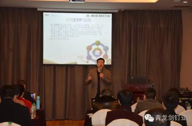 公司董事長馬志華對全國經銷商的到來表示誠摯的感謝。——“感謝各位經銷商來參加2016年度青龍劍公司第三屆優秀經銷商交流會,歡聚一堂共同探討青龍劍釘業發展大計”。